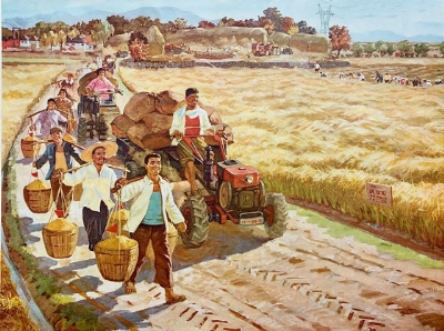 那是七十年代的某天早上,奶奶照例早早起床,打开窗户,里里外外打扫干净。“早起三光,迟起三慌。”是她老人家多年的口头禅,并多年付诸于行动实施。而我吸溜了一碗高粱面拌汤,吃了两张玉米面煎饼后,便用推车推着昨晚在大队米面加工厂加工的米面出发了。车上装着一口袋高粱面,一口袋玉米面,半口袋白面,半口袋小米,约有一百五十斤,这些粮食都是农业社社员分配的口粮加工而成,要辗转送到父亲所在的火车站,供母亲和弟弟妹妹们吃喝生活之需。“经济户,饿破肚。”因我爸是铁路工人,当时在农业社里没有劳动力,交钱领粮,明里暗里受制不少,直到我高中毕业后回村参加生产劳动,状况才稍加改善。