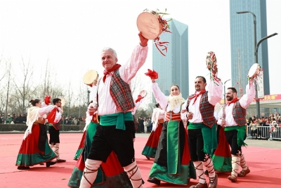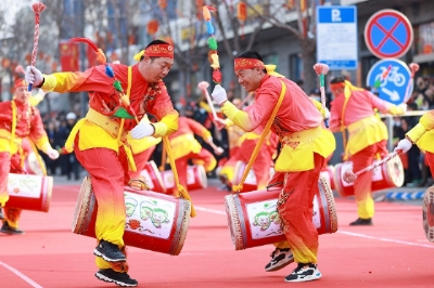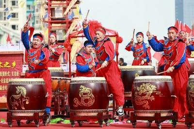 《二龙戏珠》(铜梁龙舞)《天塔狮舞》《传统伦巴排笛演奏》(意大利)《瑞狮欢腾》(广东醒狮)《潮阳英歌》《迎鼓接福》(东于迎鼓)绛州鼓乐