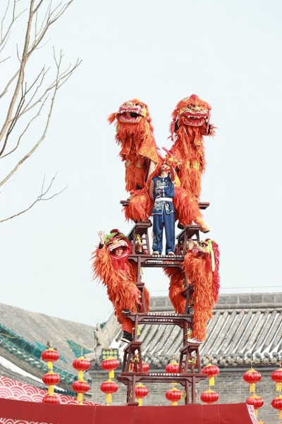 清源水城舞台《空中芭蕾》(徐沟背铁棍)《老北京中幡》
