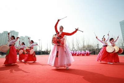 《红太阳照边疆》(朝鲜族长鼓舞)《塔兰泰拉舞》(意大利)安塞腰鼓