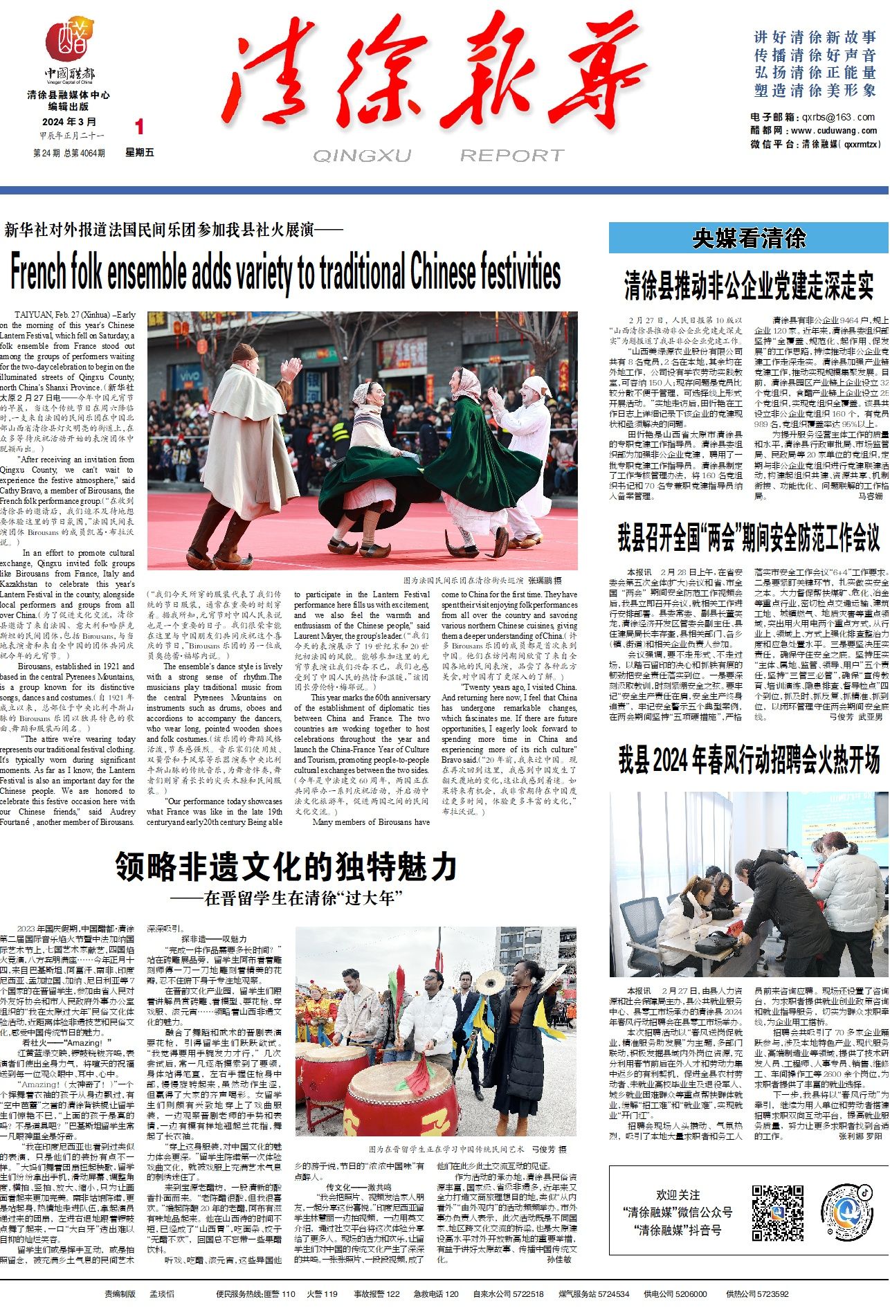 2月27日,人民日报第10版以“山西清徐县推动非公企业党建走深走实”为题报道了我县非公企业党建工...