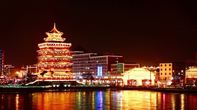 这座塔名叫水阁楼,由水塔集团出资,是明代古塔的原址复建。新的水阁楼以龟形底座托起宝塔式楼阁,外形酷似黄鹤楼,楼高九层,雕梁画栋,气势磅礴。水阁楼一旁建了醋都广场,周边很快形成了清徐县城最繁华的商业区。自此,以东湖、蓝天为背景的水阁楼图景进入人们的视野,成为新清徐最初的logo。它的典雅大气,恢宏壮观与清徐“醋都”的美名相得益彰,齐放光彩。