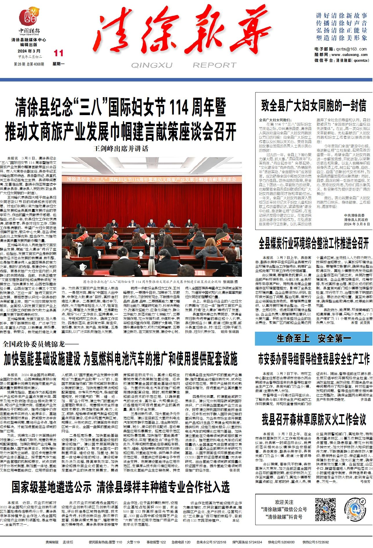 全县广大妇女同胞们: 在第114个“三八”国际妇女节来临之际,中共清徐县委、清徐县人民政府谨向...