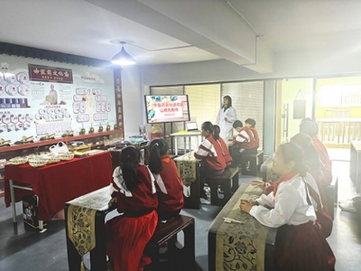 活动中,中医专家介绍了中医药材的相关知识,带领同学们通过摸、看、闻等方式近距离观察和体验草药的形色味,认识和了解各种中草药。