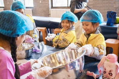 活动现场,学生们沉浸式体验红薯苗盆栽制作,观察红薯苗的叶和茎,学习种植方法和养护知识,并在研学老师的带领下学习制作手工元宵,体验了馅料沾水滚制等步骤。在娘娘庙前,大家纷纷变身“大头娃娃”,拿起锣鼓镲子,欢喜“闹红火”,体验“民俗美”。