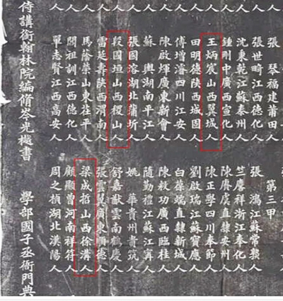 今北京孔庙中刊有梁成哲中进士的碑刻