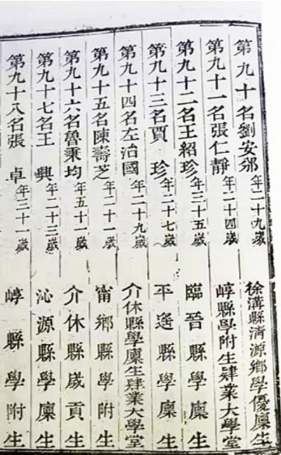 此外,在清宣统元年即公元1909年的七月初五,山西省的19个府(厅)还同时举行了清代最后一次拔贡考试,八月初六在太原进行了复试,最后发布的《抚宪覆试拔贡榜》上有243人合格,其中清源县2名,为杨生春、常燮中,徐沟县2名,为梁耀墀、宁芳。拔贡虽非正式功名,但能通过此考试,就有了进京入国子监学习的资格,相当于可以进入国家行政学院,毕业后有直接做官的机会,可见这4人也是清徐两县的佼佼者。