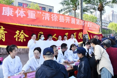 本报讯今年4月是第36个爱国卫生月,为深入开展爱国卫生运动,全面推进健康清徐建设,近日,县创卫指挥部办公室组织县疾控中心、县人民医院、县中医院、县妇幼院等多家单位在人民广场举办以“健康城镇健康体重”为主题的宣传活动。