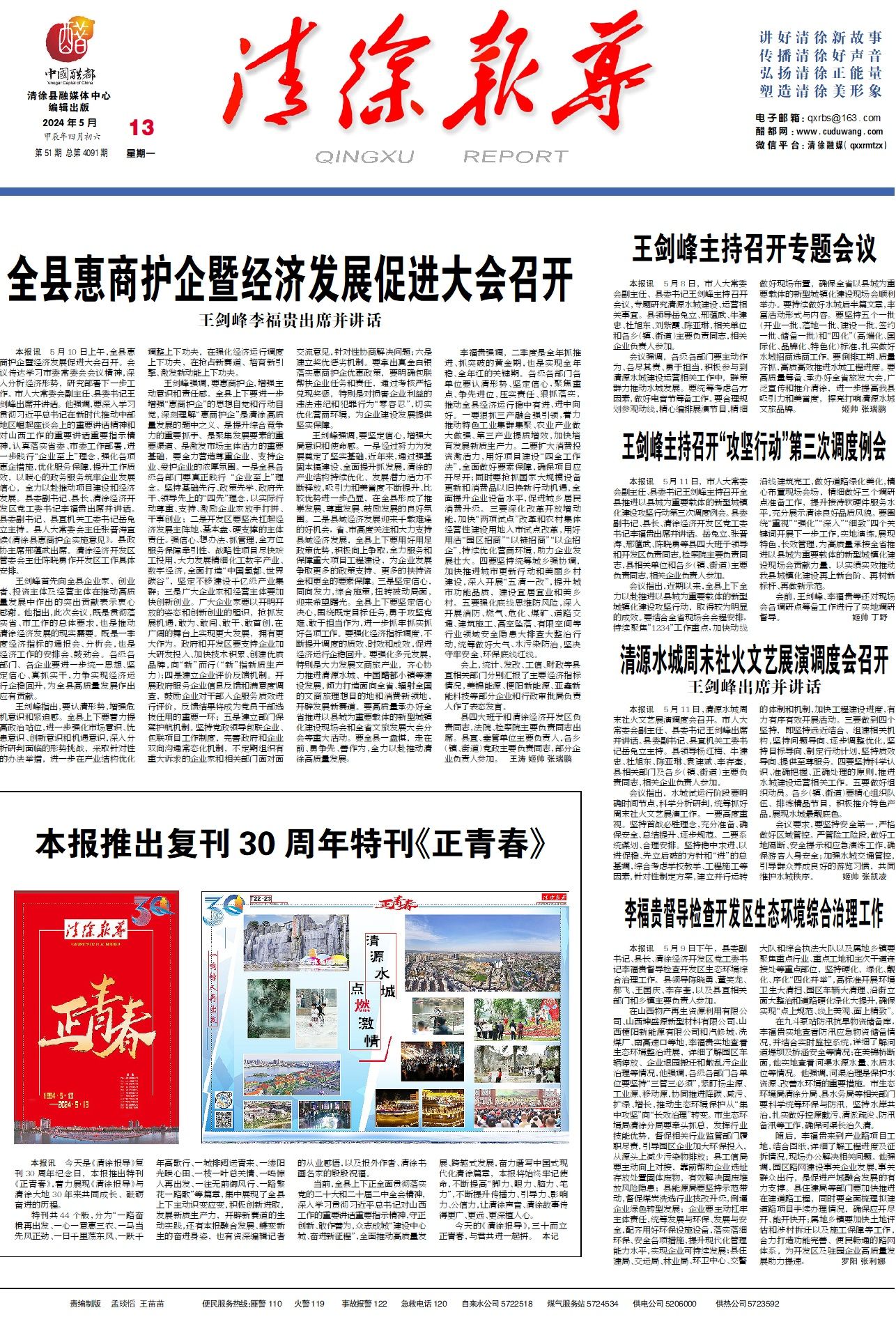 本报讯今天是《清徐报导》复刊30周年纪念日,本报推出特刊《正青春》,着力展现《清徐报导》与清徐大...