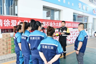 本报讯5月13日,昌顺石油为太原特战救援队送上防暑降温物资,感谢奋战在高温一线的救援人员,将清凉送到每一位坚守岗位的救援者手中。