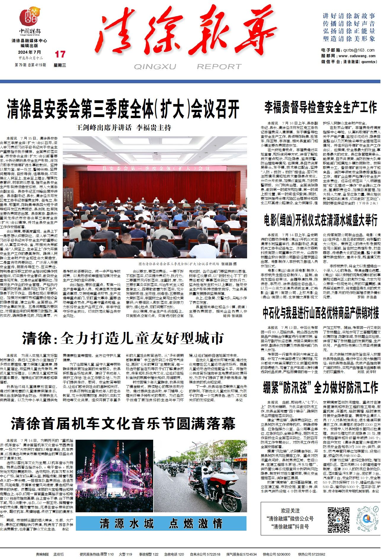 本报讯7月16日上午,县委副书记、县长、清徐经济开发区党工委书记李福贵深入清源镇、东于镇督导检查...