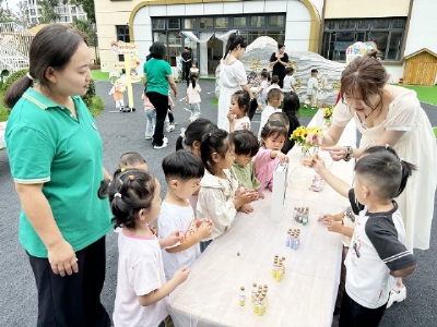 步入幼儿园,孩子们被一系列充满创意与心意的开学活动所吸引,他们迈着轻快的步伐,一步一步跨越成长之栏,“平安健康”“快乐成长”“聪明伶俐”……每个跨栏都承载着不同的祝福。不仅如此,幼儿园还精心设置了许愿石、盲盒抽奖和流沙祝福瓶等互动环节,让孩子们在参与中感受到幼儿园生活的乐趣与惊喜。他们将在老师们的关爱与陪伴中,体验幼儿园集体生活的美好,勇敢地踏上人生阶段的探索与成长之旅。此外,爱朗幼儿园还迎来了300余名东湖幼儿园的孩子们在这里学习,共同探索知识的奥秘。弓俊芳刘凯