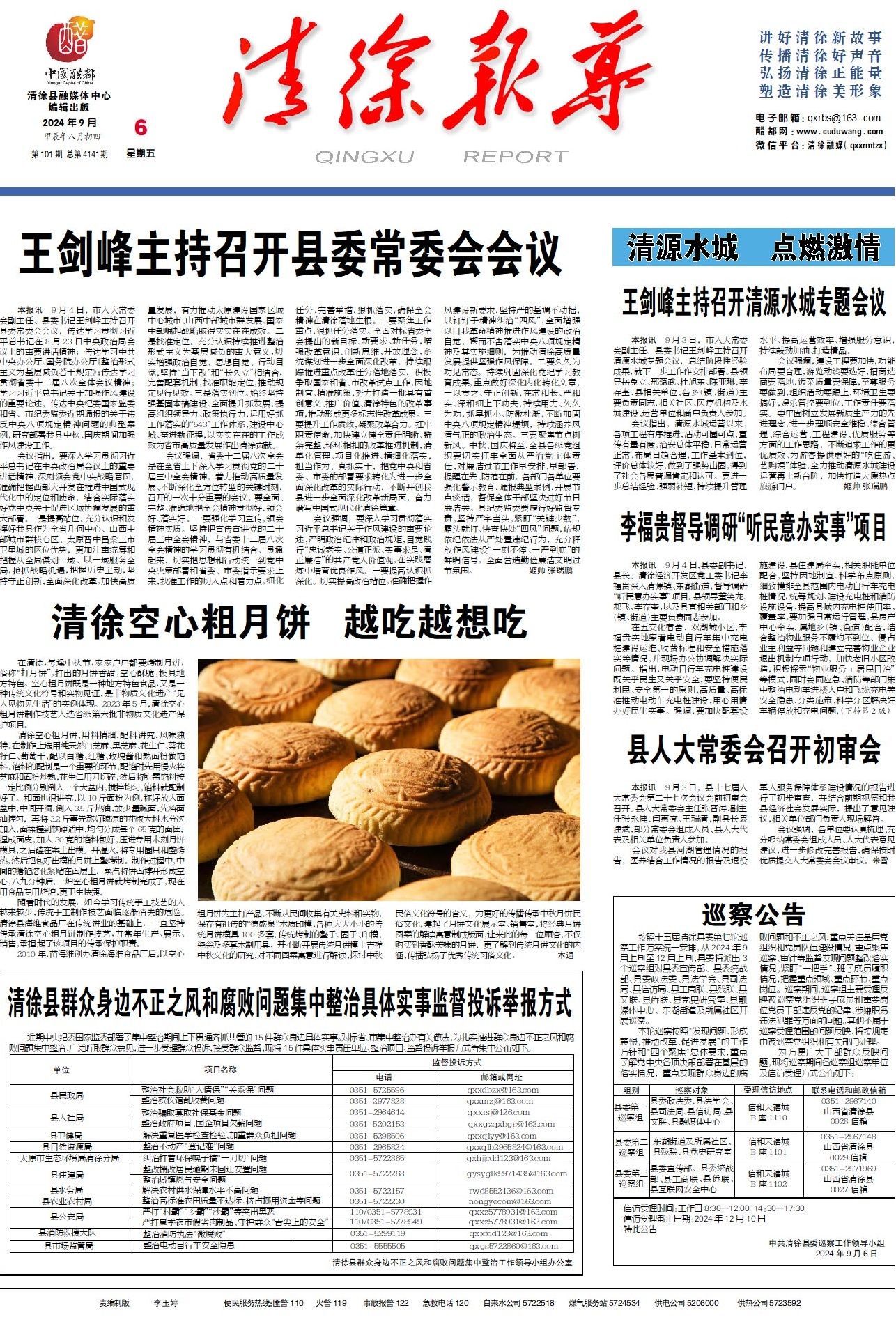 本报讯9月4日,县委副书记、县长、清徐经济开发区党工委书记李福贵深入清源镇、东湖街道,督导调研“...