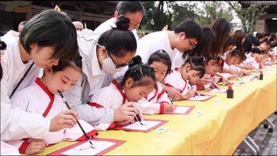 本报讯9月14日,陈庄小学在清源水城文庙举行“翰墨初启·开笔破蒙”新生开笔礼仪式。