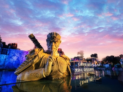 踏入城内,时间仿佛放慢了脚步。四大莲花水池造型独特,倒影如画,阳光照射下,形成了水中五彩缤纷的莲花。沿着水道前行,漫步于小桥亭台,临廊楼阁,古色古香的多孔彩桥,让人仿佛穿越时空,体验江南风情。泛舟湖上,情侣们和幸福家庭的欢歌笑语充满了船舱,此景可能连天上的仙女看见也忍不住想要游玩一番吧。微风吹皱水面,鱼儿窃窃私语,蜻蜓戏水,楼亭倒影,水波荡漾,细风拂面,云雾缭绕,宛如仙境。