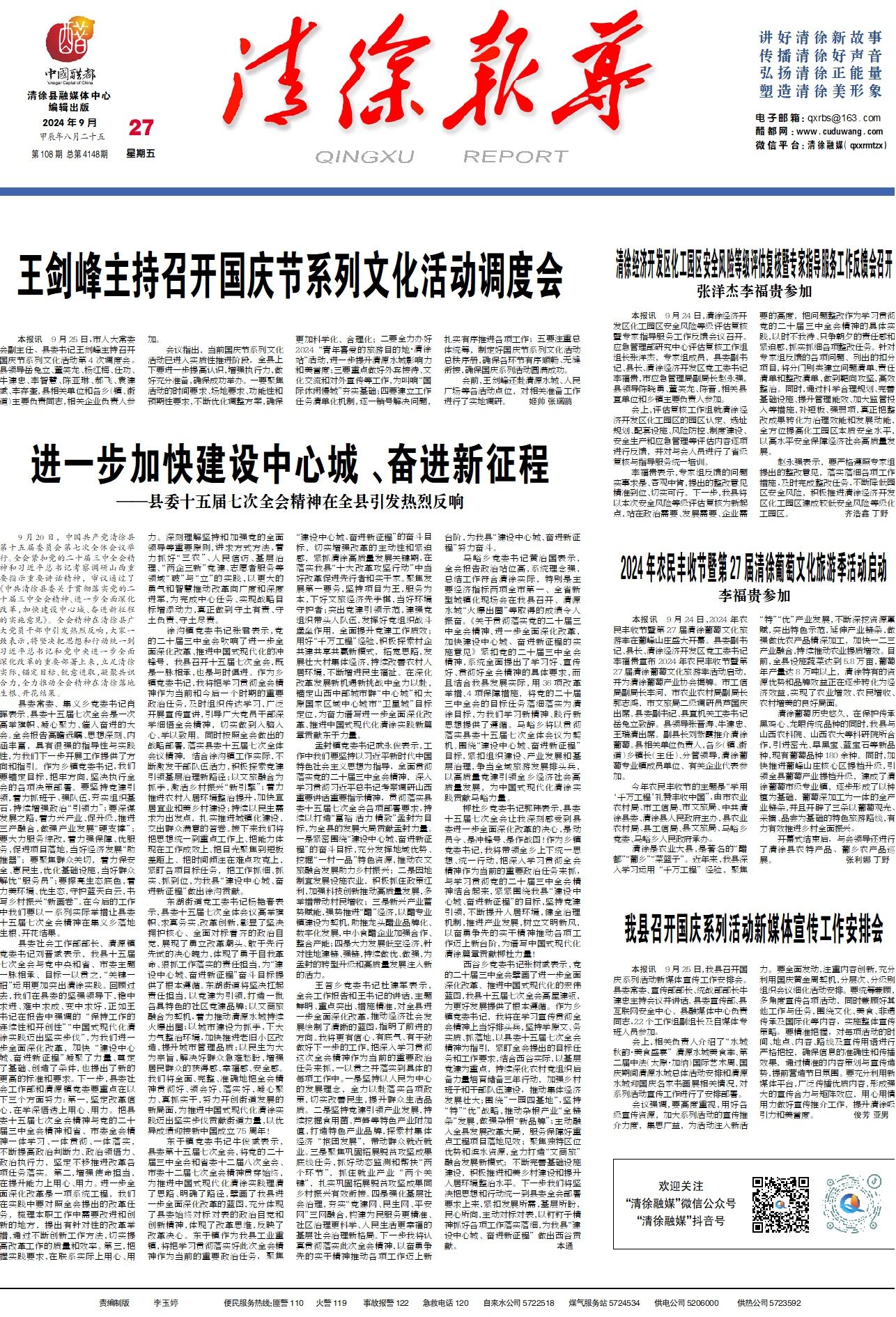 9月20日,中国共产党清徐县第十五届委员会第七次全体会议举行。全会紧扣党的二十届三中全会精神和习...