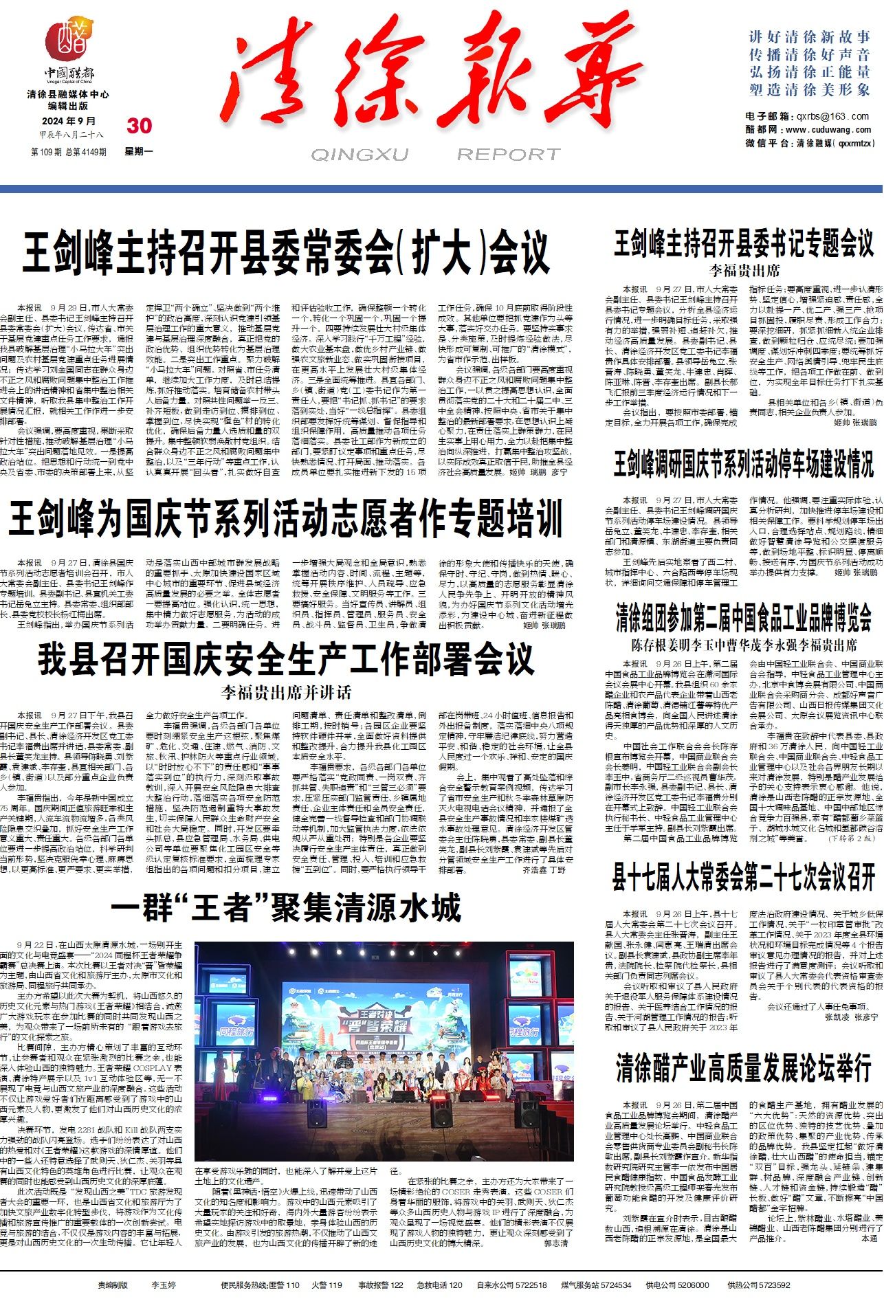 本报讯9月27日下午,我县召开国庆安全生产工作部署会议。县委副书记、县长、清徐经济开发区党工委书...
