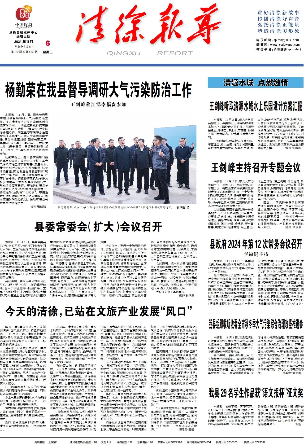 本报讯11月1日下午,县委副书记、县长、清徐经济开发区党工委书记李福贵主持召开2024年县政府第...