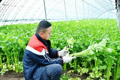 初冬时节,温暖的阳光穿透保温膜照耀在大北村的温室大棚内,一股清新的泥土芬芳扑面而来。村民保柱忙碌地穿梭其中,熟练地采收着成熟的小白菜。从收割到称重,再到捆扎、装车,一辆货车上渐渐堆满了整齐排列的白菜,准备运往市场。肉牛满脸喜悦地说道:“我今年经营着两个大棚,占地两亩多,第一茬种的油菜,第二茬又种了菠菜和西芹,现在种的是小白菜。自从大棚经过改良后,蔬菜的品质好了不少,过来批发的蔬菜商特别喜欢我种的菜,挣得也多了,日子越过越好。”