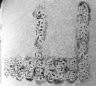 功德栏铭文,有徐邑(徐沟)庆丰堂五千;中宅天禄堂一千王高恩;清源县长顺通一千、丰裕庆一千、积成玉一千、囗丰裕一千、徳荣长一千等字样。证明清、徐人对晋祠补铸铁人神像,有很大的热情,并用实际行动支持这项产业。