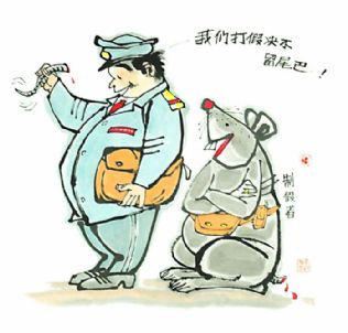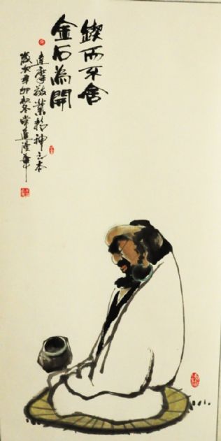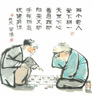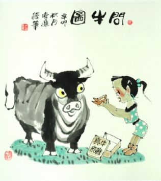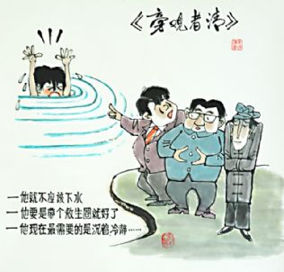 观看常进先生的漫画作品,从中可窥视其对漫画的执著与勤奋。他的漫画透着质朴,贴近生活,其夸张幽默的手法,常常让人忍俊不禁,在笑声中受到思想的启迪与精神的陶冶。他那辛辣讥讽的笔触,有力的针砭时弊,伸张正义,给人以鼓舞和警示。1998年退休之后,他痴心不改,又开始了绘画转型,专攻水墨人物以及漫画小品。这类作品,造型夸张谐趣,笔墨洒脱有力。《钟馗》大气传神,《达摩》凝重肃目,《笑佛》乐而忘忧。特别是在水墨的处理上,他有独到之处,得到省内外名家的首肯和观赏家的好评。