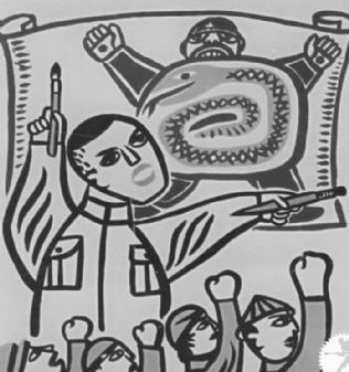 第二天上学的路上,我留心观察,果然在富隆永、衙门街口、十字街、市楼等处墙上都贴出了我早已见过的抗战标语。那标语纸虽小,但十分显眼。