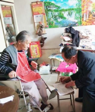 醋都社区工作人员上门为行动不便的老人办理医疗保险