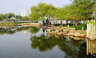 从湖的西南角沿顺时针方向走。湖西岸那块宽敞的平台上,有一群老太太在一个老头的带领下正在练着太极剑,虽然动作是那么的笨拙,但每个人的神情是那么专注,不由让人敬佩几分。