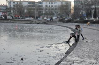 随着气温下降,昔日里波光鳞鳞的东湖湖面已被冰层覆盖,冰层厚度不一,但大部分较薄,好几处还有被凿过的冰窟窿。日前,笔者路经此处,看到几名小学生在湖面上踩踏冰层,纵使冰层踩碎,鞋子浸湿,也不收脚,玩得不亦乐乎;时不时弯下腰去拨弄碎冰,甚至还在冰面上踢起了冰球,看着实在让人担心。