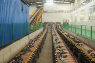 赵学栋介绍,铸造行业的脏乱主要来自翻砂工艺,大量用砂使得工作环境条件难以达标。现在升级改造,使用国内一流的自动化砂处理生产线,实现了铸造砂的循环使用,车间遍地河砂,乱堆乱放的状况再也不见了。就连铸件上的附着砂,在输送线上也能实现全封闭处理。