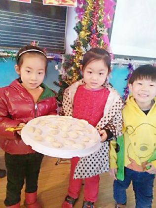 活动现场,家长、老师与孩子们一起动手包饺子,粉色、绿色、紫色、橙色的面团在大家手中变成了一朵朵粉嫩的花朵、一只只欲飞的蝴蝶、一条条鲜活的小鱼……富有创意的饺子宴包出了热情,煮出了快乐,吃出了颗颗挚诚的心。