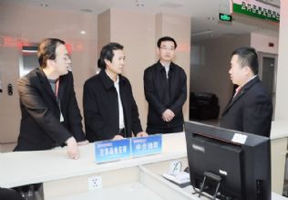 省社科院调研组与县人大、组织部、纪委、宣传部、法检部门、编办、乡镇负责人围绕如何推进“六权治本”、做好“三个一批”工作进行了座谈,并深入政务服务中心、阳煤太化清徐化工新材料园区项目工地进行了实地调研。(图为省社科院调研组在政务服务中心调研)