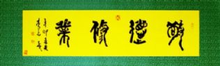 李元茂先生是国家一级美术师,文化部文化市场发展中心书画鉴定专家,北京国博文物鉴定中心书画鉴定专家,国务院特贴文物鉴定专家,央视《鉴宝》《寻宝》专家。他创立了草篆体系,淋漓挥洒,风格独特。郭宝维先生是全国工艺美术家协会会员,晋祠博物馆文物研究所所长,这次展出的“百米丹青”是先生用后半生精力绘画的一组水墨山水长卷——“神州万里图”。该画高2.2米,长100米,画幅既可独立成幅,又可相连成卷。李元茂先生和郭宝维先生都是我们清徐人,都是我们清徐的骄傲。