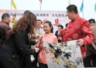 现场,男女老少都赶来了,他们等着、看着、排着队,向书法家、画家们索要作品,台上歌舞升平,台下墨宝流芳,整个会场热情高涨,有看的、有听的、有佳作现场赠送,第三届东湖雅集收到了前所未有的“惠民”效果,直到墨枯纸尽,群众一直在场内留连,不舍离去。一上午时间,共为群众送上16个精彩排的文艺节目,现场赠送书画作品650余幅。