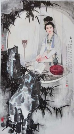 兼工写意端庄,大作佳,红楼艳妆。笔底线描呈酣畅,现锋芒。
