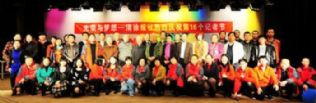 说实话,这个舞台实在寒酸。裸露的土色台面,笨拙老旧的照明,土色的背景,除了今天的庆祝主题,没有任何别的装饰。不比一般人家婚庆时的T台,遑论金碧辉煌、灯光灿烂、绚丽夺目的晚会舞台。