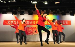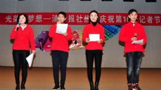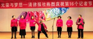但这不影响报社这一群人欢度自己的节日。节日的主题是“光荣与梦想”。这几个大字,写在本色的背景墙上,倒是比挂在缤纷富丽的帷幕上更显得真实,也更觉得荣光。感恩的心,奉献,我们在路上,新闻人永远是年轻,明天会更好……他们用自己的形式,给自己过节。