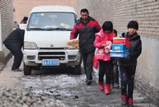 一袋面,一壶油,一包衣服,几盒鞋子,一个水壶、一摞盘碗、一包水果糖……当同行的爱心人士将这些日用品从车上提下来的时候,赵海亮与他的三个孩子一脸感激地迎了出来。