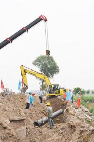 为了不担误水源对接,县委、县政府提前工作,及早与市供水集团接洽,从5月27日起,开始实施市供水集团滨河西路南延“迎宾路—清东路”引水管道与文源路自来水管道连接工程,全长需铺设供水管道650米,目前,工程进度与日俱增,正在紧张施工中。等市供水集团引水管道送水后,此项连接工程将实现市供水集团水源和我县自来水水源合并供水,可以进一步缓解县城供水紧张的状况。