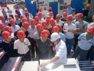 观摩中,基地负责人展示了安全管理及绿色文明施工样板,工作人员还进行了安全誓师和安全签名。观摩后,还进行了消防演练。