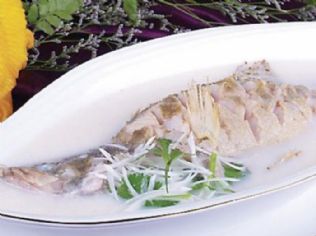 [做法] 黄鱼洗净后剞成花刀纹备用,葱、姜洗净切丝。油锅烧热,鱼下锅两面煎至见黄,捞出淋干油;锅内放少量油,热后,将胡椒粉、姜丝入锅略加煸炒,随即加入鲜汤、酒、盐、鱼,烧至鱼熟,捞起放入深盘内,散上葱丝、香菜;锅内汤汁烧开加入白醋、味精、麻油搅匀倒入鱼盘内即可。