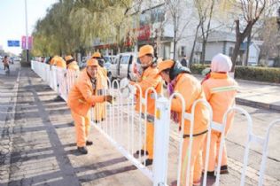 县环卫局对道路交通护栏设施进行全面擦洗保洁