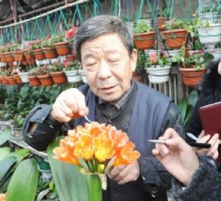 渐渐地,幼苗的根须生出来了,老刘又开始一株一株将它们移栽到盆里。花越长越大,越来越多,如何管护成了首当其冲的问题。身边没有老师,老刘就订阅了《中国花卉养殖》等杂志,苦心研究君子兰的习性、爱好、坐果、授粉等问题。同时,他还联系着一帮花卉养殖爱好者,大家不定期聚在一起总结交流、探讨心得。在他的勤奋钻研下,十余个品种的上千盆君子兰形成气候,并且长势喜人。