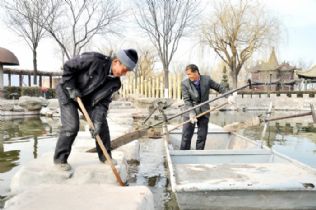 为防止游人特别是儿童落水后救援不力,3月9日下午,怡心园工作人员对湖中石头路周遭进行了铲土填埋。