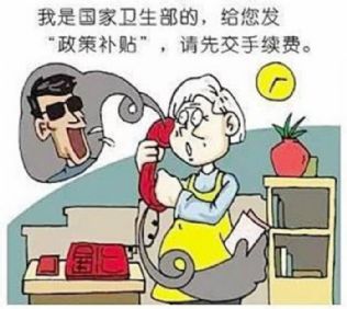 某些不法商家冒充国家卫生部的电话向家境贫寒又久病缠身的老年人直接打电话,谎称能为他们向国家有关部门申请“政策补贴”和药费补助,进行欺骗误导。老年人不要为了获得所谓“政策补贴”而上当受骗。