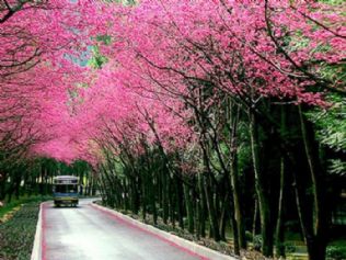 盛开的樱花,一团团、一簇簇、一层层、一片片……远看如白云,似粉雾;近看如绢帛,似锦缎,蔚为壮观。阿里山樱花种类繁多,花期交错,花色各异,把阿里山渲染得妩媚动人。