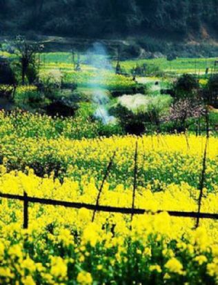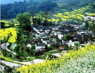 每年的三四月份,是婺源一年中最美的时光。漫步于乡村田野,金黄的油菜花,粉红的桃花,洁白的梨花、李花随处可见。或田野,或园中,或院内,或屋下,不经意间,五彩缤纷的花儿便跳入你眼前,陶醉着四面八方的看花人。徽式房屋的小村庄,古老的窄街巷,乡间的小路,这一切都不禁让人联想到陶渊明笔下的世外桃源。我们去时,江岭村的油菜花开得正旺。站在山顶上向四周望去,漫山遍野的油菜花呈梯田状,从山顶一直铺展到山谷里,层层叠叠,围拢着黑瓦白墙的徽派民居,在婺源没有比这更壮观的景致了!