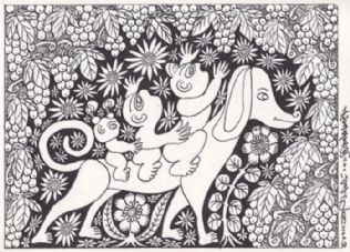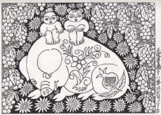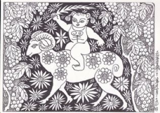 这组以十二生肖为内容的“老年童画”,是老杨集童心与老年智慧于一体,烩灵感与匠心一身,融合我县砖雕、木雕、石雕等民俗文化元素创作的一组作品。关于老杨的“老年童画”,其创作之境界意境,可从其曾经写过的一篇文章《人到七十之“老年童话”》中窥得一斑,下面,特节选其中段落与读者分享:
