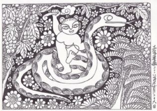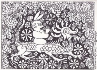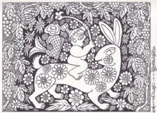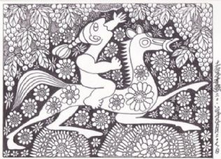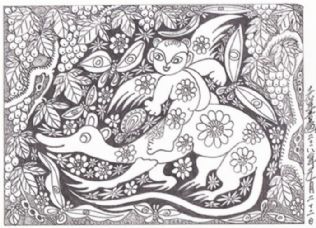 另一层面,总想在“老年童话”中赋予一种将老年人与儿童思维混合搅拌的寓意,即让儿童天真好奇的幼稚思维,重新返回老人颅腔,促使其欢乐喜悦、蹦蹦跳跳、笑口常开、童趣再现;促使其颅腔中的思维升腾活跃。向高,欲登珠峰,向低,欲探地核。欲揭时空之寿限,欲摸宇宙之边沿。如此精神一旦归来,该老者定可青春焕发、鹤发童颜,说不定还会每日里提出三、五个“苹果为什么不向天那边掉去”的问题。如果真能这样,那可就越老越值钱了……