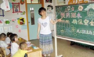 ◆县职工幼儿园教师牛娟娟为学生上安全课